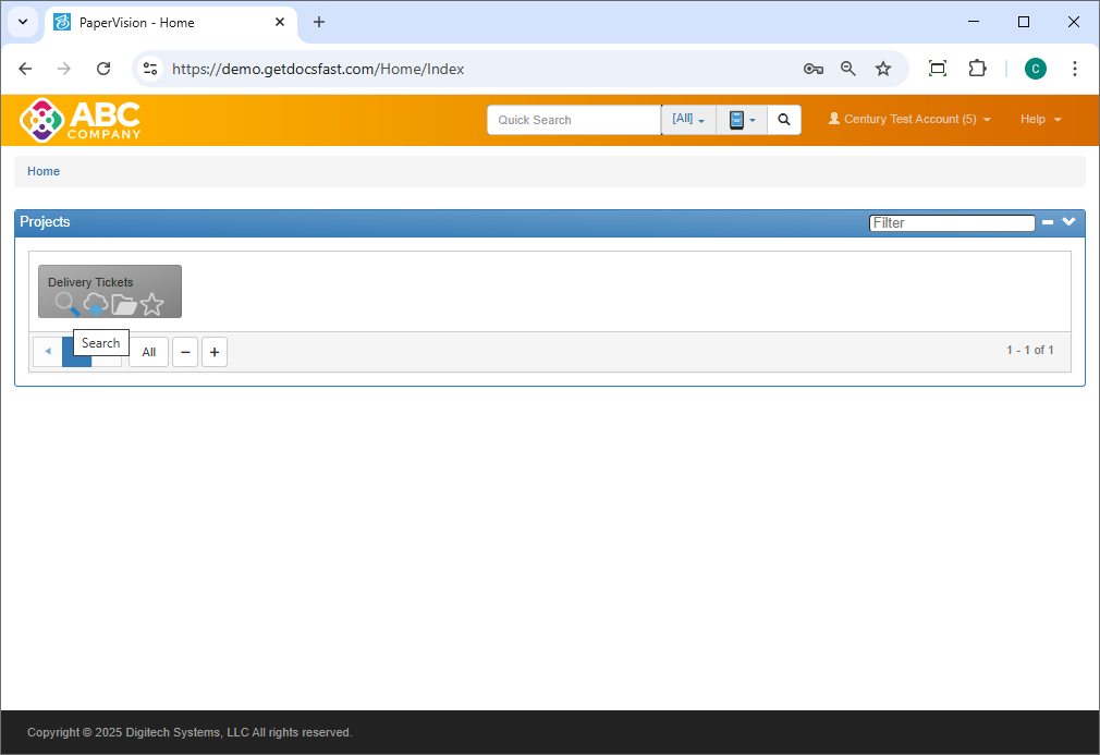 Click the magnifying glass icon to search this Delivery Tickets Project