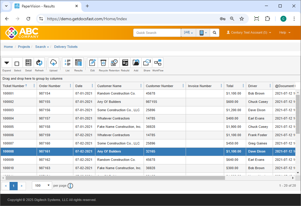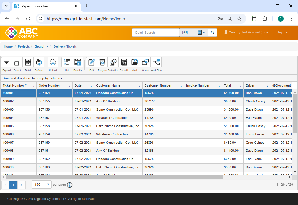 Click anywhere in the desired row to view the document