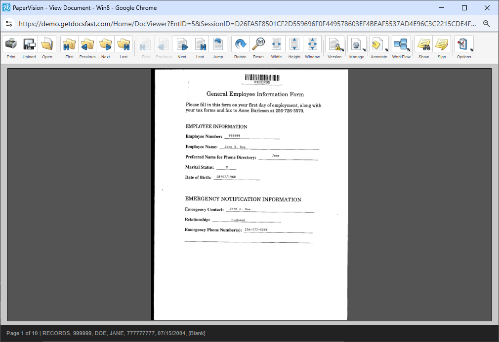 The document is displayed and ready for your users to work with it